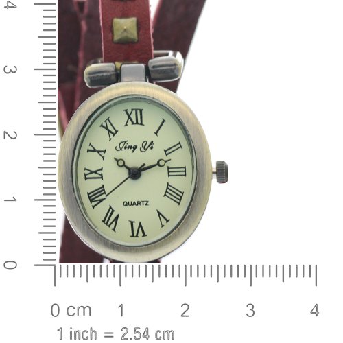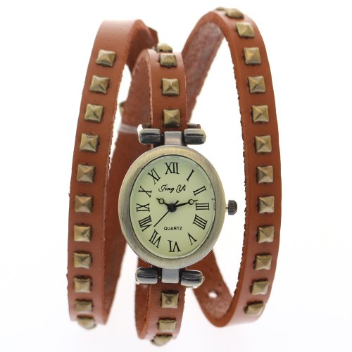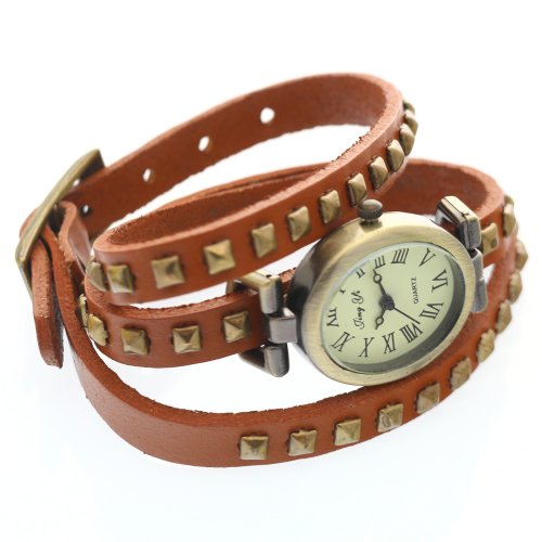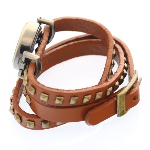 ---CLW vintage womens watches ---Colorful straps available: black blue brown chocolate green orange purple red tan white yellow ---Antique watches ---Bronze Watches Case ---Retro Style --- Ancient accessories rusted copper rivets --- Rusty Studs ---Cow leather band ---Genuine leather strap ---Japan quartz movement ---Fashion style ---Vintage designs ---Dress wristwatches ---Quartz watches ---Roma numerals ---For womens girls ladyFeature