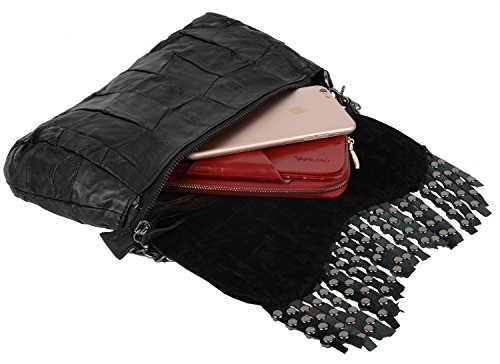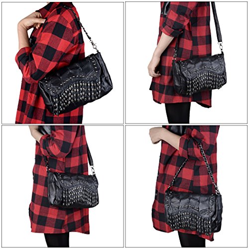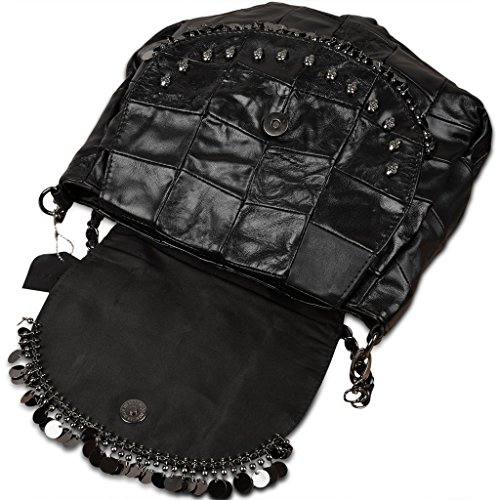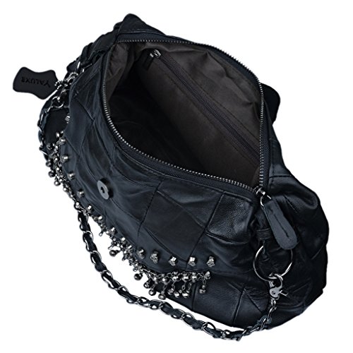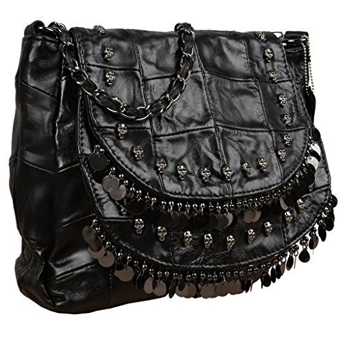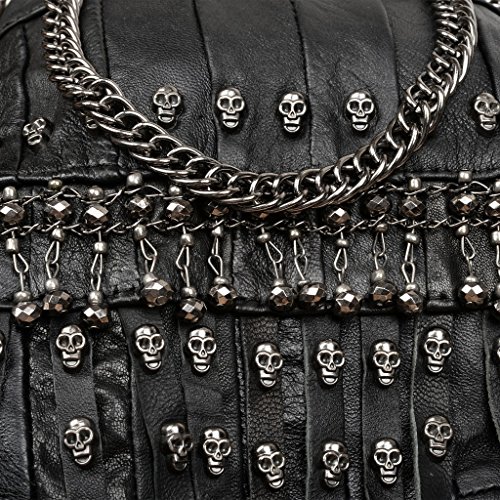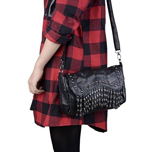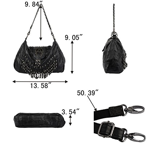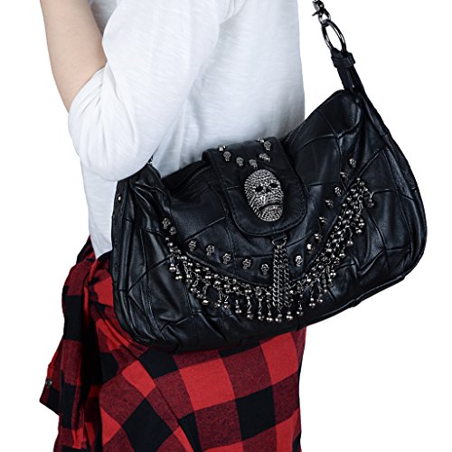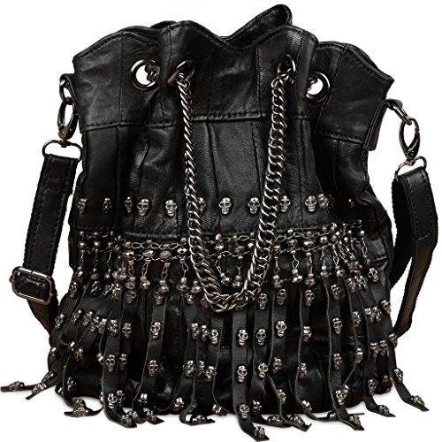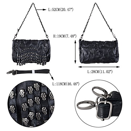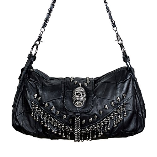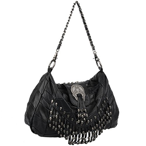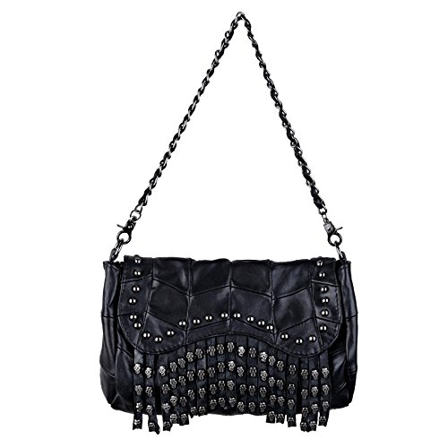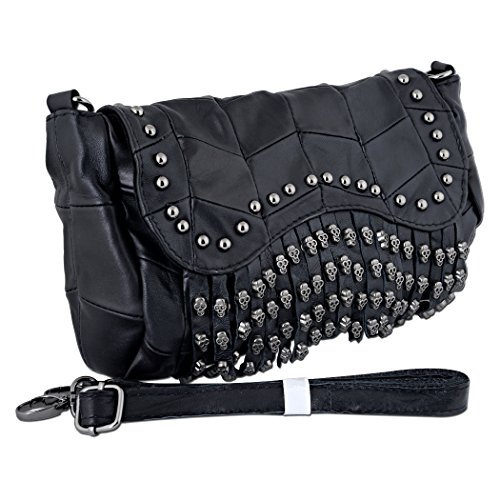 (YALUXE)/Accessories/Handbags/DIRECT FROM USA/YALUXE Women's Skull Studded Bling Tassel Lambskin Leather Purse Cross Body Shoulder Bag