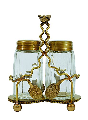 Creative Co-Op Vintage Reproduction Glass Salt and Pepper Shakers with Metal Basket, Clear