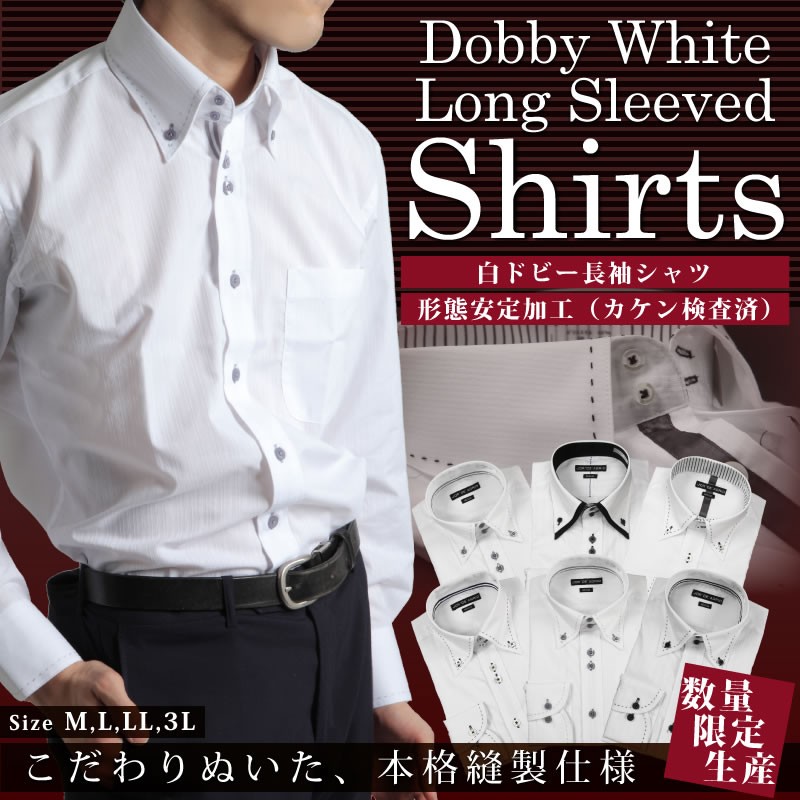 ジャンル(メンズ/ワイシャツ長袖 クレリックシャツ/ドレスシャツ/Yシャツ/クールビズCool biz/カッターシャツ/ボタンダウンシャツ/ドゥエボットーニ/襟高シャツ/黒ボタン/カラーステッチ/二枚襟/ストライプシャツ/ビジネスシャツ)