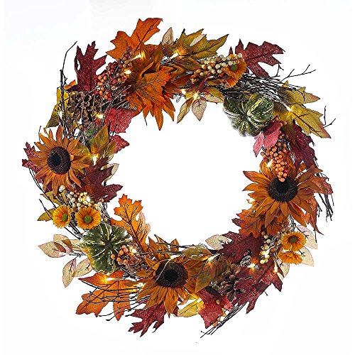 Kurt Adler H4095 24" Battery-Operated Fall Twig LED Wreath