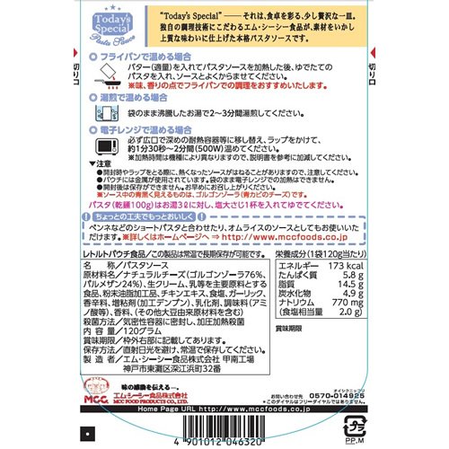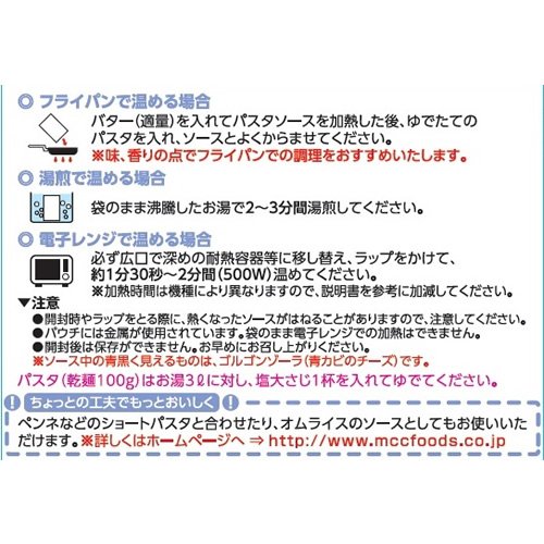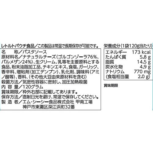エム・シーシー食品「パスタソースシリーズ」は素材を活かし独自の調理技術にこだわり、上質かつ風味豊かに仕上げたパスタソースです。ピカンテタイプのゴルゴンゾーラを贅沢に使い、生クリームでなめらかに仕上げたソースです。パスタソースとしてははもちろんのこと本格ソースとして他のお料理にアレンジしてお楽しみ頂けます。