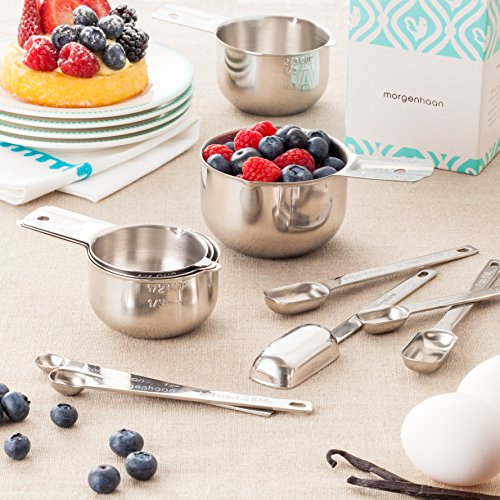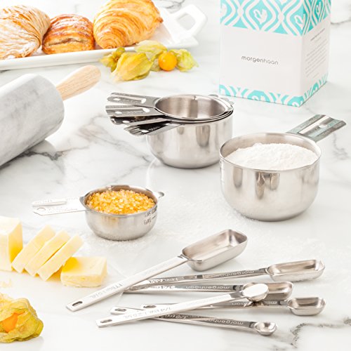 - WHILE OTHER MEASURING CUPS AND SPOONS SETS have fragile handles that may bend or break, original Morgenhaan "Forever Handles" are engineered in one piece with 18/8 stainless steel to last forever. And instead of printing labels that might fade, we stamp volume markings directly into the metal so they’re permanent and easier to read. Enjoy confident scooping and absolute precision with a measuring set that will never need replacing