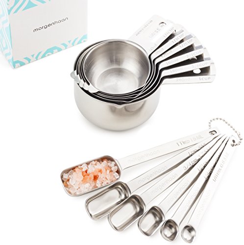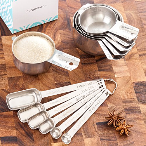 Measuring Cups and Spoons by Morgenhaan with "Forever Handles" - Stainless Steel Metal 12 Piece Set including 6 Nesting Cups and 6 Narrow, Stackable Spoons Best For Dry & Liquid Ingredients