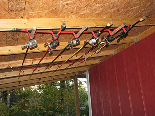 -. Binding : Misc. -. Brand : Campingandkayaking -. Feature : Mount on the wall or over head with included hardware. / Strong non abrasive polypropylene webbing protects your equipment. / Two options, 6 rod or 9 rod system. (If needed, the holders may be doubled up.) / Stylish Red on Black design with bar tack construction. / Built in the USA, (hardware imported) -. IsAutographed : 0 -. IsMemorabilia : 0 -. Label : Campingabdkayaking -. Manufacturer : Campingabdkayaking -. PackageQuantity : 1 -. ProductGroup : Sports -. ProductTypeName : SPORTING_GOODS -. Publisher : Campingabdkayaking -. Studio : Campingabdkayaking -. Title : Overhead or Wall Fishing Rod Rack, Rod Storage System suspends your rods in soft webbing loops protecting your equipment’s finish. The 72”version has 9 positions 46”has 6. Hardware included
