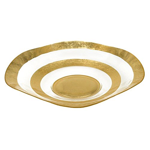 Badash D723G Round Gold Color Leaf Wave Handmade Glass Bowl, 19"