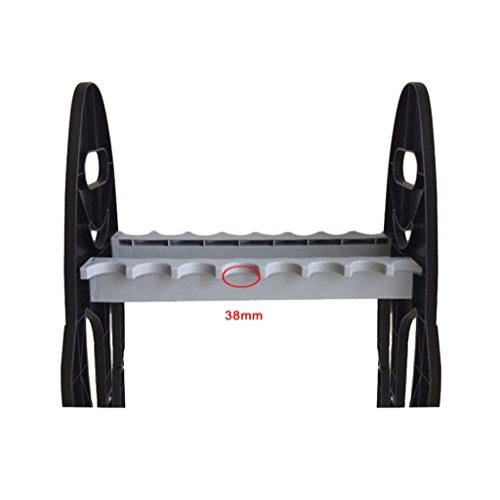 -. Feature : It can store and display up to 16 rods and reel combinations, or fishing landing net, hiking sticks, billiard sticks side by side / Super light and easy to assemble and transfer, double sided storage / Easy to use, provides easy access to your rods and sticks, securely store any rod type with the reels on / Get one for your boat, yacht, garage or maybe even the bedroom / Portable, durable and space saver