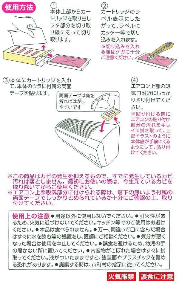 | セット内容 | エアコン用アロマDE防カビ(カートリッジ・両面テープ)×4 |