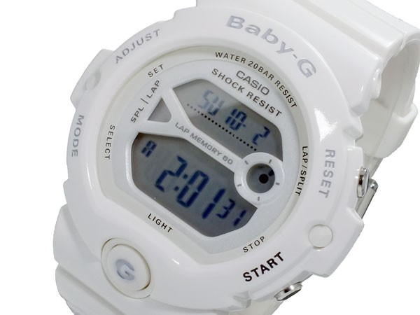 カシオ CASIO BABY-G ベビーG ベイビーG ベビージー ベイビージー 腕時計 ウォッチ レディース  商品仕様:(約)H40×W40×D12mm(ラグ、リューズを除く)、重さ(約)49g、腕回り最大(約)19cm、腕回り最小(約)14cm、ベルト幅ラグ付近(約)24mm、ベルト幅バックル付近(約)19mm 樹脂(ケース)、樹脂(ベルト) ボックス・保証書・取扱説明書レディース耐衝撃構造(ショックレジスト)、無機ガラス、 20気圧防水、 デュアルタイム、ストップウオッチ(1/100秒、100時間計、ラップ/ スプリット付き)、計測ログデータを最大60本メモリー、タイマー(セット単位:1分、最大セット:24時間、1秒単位で計測、オートリピート)、マルチアラーム3本(1本のみスヌーズ機能付き、約5分毎に最大7回報知)・時報、サマータイム設定機能、フルオートカレンダー、12/24時間制表示切替、操作音ON/OFF切替機能、ELバックライト(オートライト機能、残照機能、残照時間切替(1.5秒/3秒)付き)、平均月差:±30秒、カラー:ホワイト(文字盤)、ホワイト(ベルト)1年間