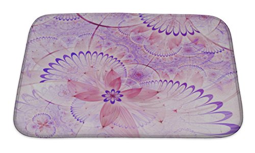 Gear New No Slip Microfiber Memory Foam Purple Fractal Floral Pattern Digital Artwork for Creative Graphic Design Bath Rug Mat, 24" X 17"