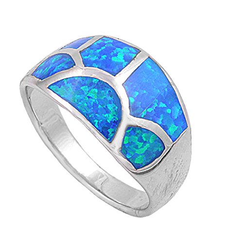 -. Title : Sterling Silver Turtle Shell Pattern 12MM Blue Lab Created Opal Ring