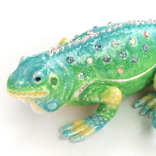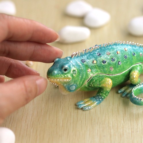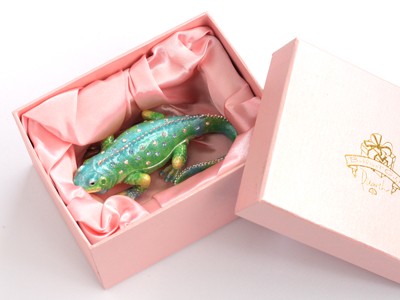 | ジュエリーボックスと言えば、指輪やピアス、ネックレスなどのアクセサリーを入れる引き出し型のケースを思い浮かべる方が多いかもしれません。 ピィアースのジュエリーボックスは、動物や花などをモチーフに作られ、合金製でずっしりとした重さがあります。また高品質のクリスタルガラスを贅沢に使用。まるでジュエリーボックスそのものが宝石のような、高級感溢れる仕上がりです。 小物入れとしても使えるように開閉口には磁石が取り付けてあり、アクセサリーなどなくしやすいアイテムの収納ができます。キラキラと美しく輝く宝石箱は、そのまま飾って楽しめるインテリア雑貨として多くの方に愛されています。 国内トップクラスのジュエリーボックスメーカーであるピィアースは、2004年ごろから本格的に宝石箱の製造を始め、現在のジュエリーボックスはなんと300種類以上。大規模展示会でもご好評いただいており、全国有名百貨店でも販売されています。 自社工場でひとつひとつ丁寧に手作りし、原型作成、研磨、加工、着色、小さなクリスタルガラスの取り付けなども全て手作業で行われるこだわりのハンドメイド品。完成後は厳しい検品の後、丁寧に梱包作業をしお客様にお届けしております。 ピィアース商品は、全国有名百貨店および全国有名宝石店チェーンにてお取り扱いいただいている高品質商品です。 ★自分へのご褒美に…コレクションして並べて飾ると、さらにかわいらしさUP! ★恋人へのプレゼント…中にアクセサリーを入れて、サプライズな贈り物として ★家族への感謝ギフト…お母さんや姉妹へ、日頃のありがとうの気持ちを込めて ★誕生日プレゼント…お友達の喜ぶ顔が見たいから、いつもと違うキラキラギフトを ★小さな女の子へ…まるでお姫様が使っているようなキラキラ宝石箱は女の子の憧れ! |