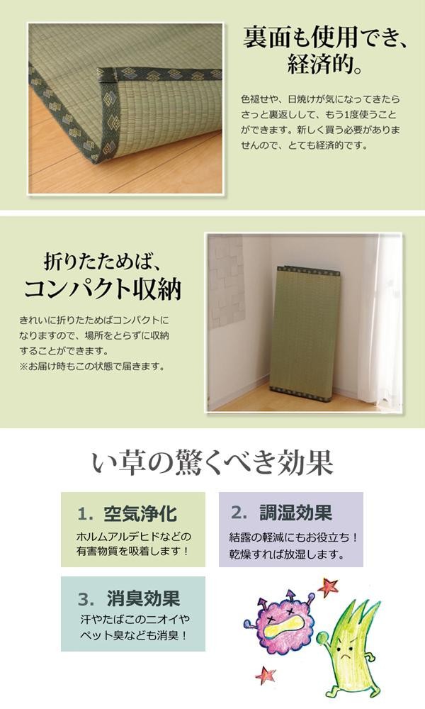 上敷きを敷くだけで畳のお部屋をリフレッシュ出来ます。日焼けしてしまった畳のリフレッシュに、新品の畳を汚さないためのカバーにご使用下さい。