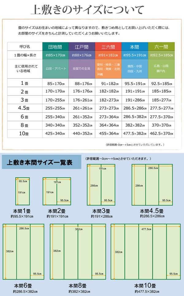 fk094igrjs上敷きを敷くだけで畳のお部屋をリフレッシュ出来ます日焼けしてしまった畳のリフレッシュに、新品の畳を汚さないためのカバーにご使用下さい サイズ 本間8畳(約382×382cm) 個装サイズ:55×93×12cm 重量 個装重量:8200g 素材・材質 い草(九州産) ヘリ:ポリプロピレン、ポリエチレン 生産国 日本 畳のお部屋をリフレッシュ 上敷きを敷くだけで畳のお部屋をリフレッシュ出来ます日焼けしてしまった畳のリフレッシュに、新品の畳を汚さないためのカバーにご使用下さい