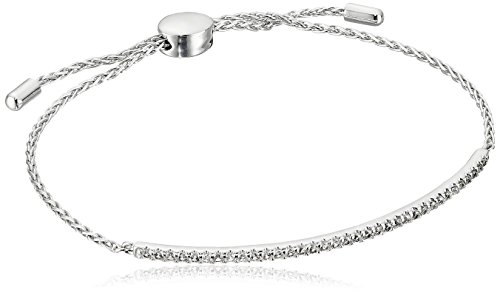 -. Title : Rhodium Plated Sterling Silver Created White Sapphire Bar Bolo Adjustable Bracelet