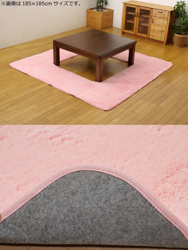 掘りごたつ対応のカーペットです。くり抜き部分もお届けします。表地にフィラメント糸(極めて長い繊維)を使用しています。パイルの長さは約18mmと適度な長さで、さらさらふわふわとしたやさしいタッチ感を出しました。フローリングを傷つけにくいよう、裏には不織布を貼っています。 |
