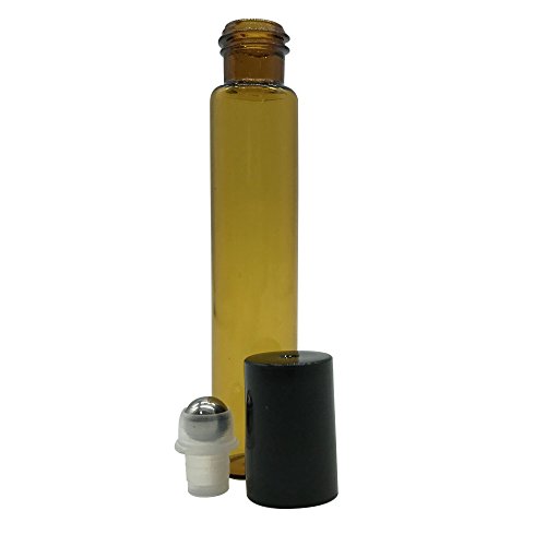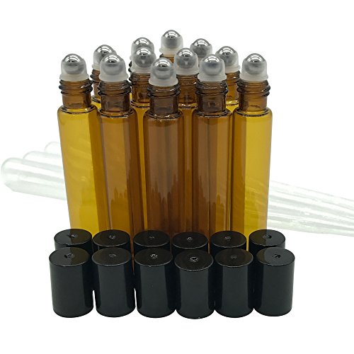 MAYMII 12, Amber, 10 ml Glass Roll-on Bottles with Stainless Steel Roller Balls - .5 ml Dropper included (4)