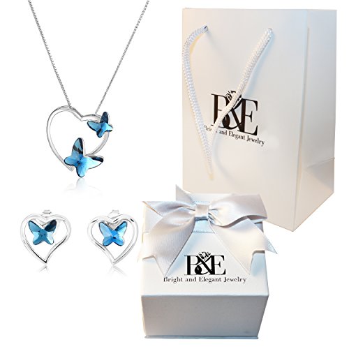 -. Title : Heart Butterfly Sterling Silver Necklace Earring Matching Womens Girls Jewelry Set, Great for gift, brithdays, present