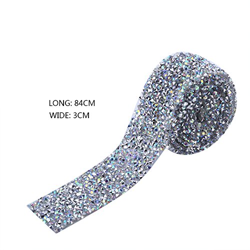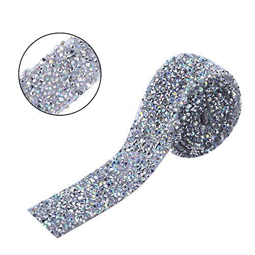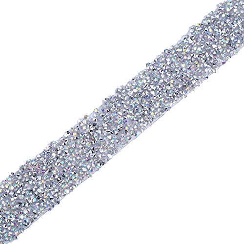Crystal Rhinestone Ribbon, Sparkling Diamond Rhinestone Bling Ribbon Roll Decorative Banding Belt Ribbon Wrap for Wedding, Cake Decoration, Party, and Floral Arrangements, 1Yard (x 1.18"), Colored