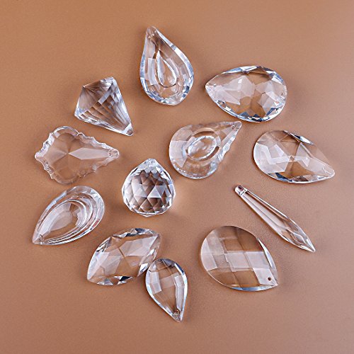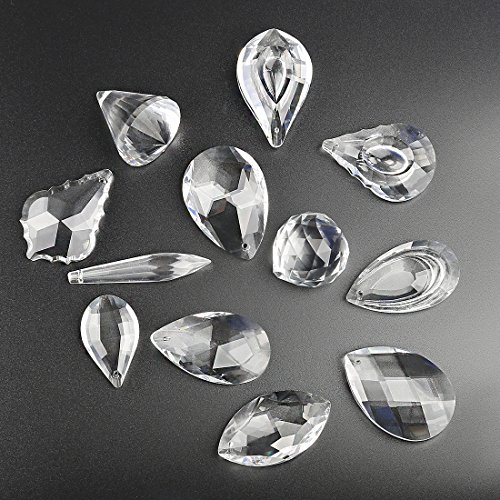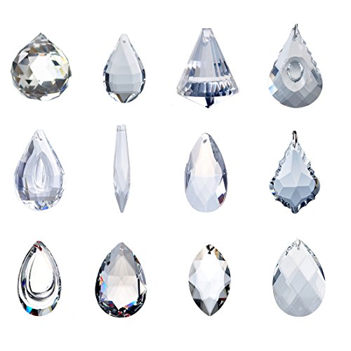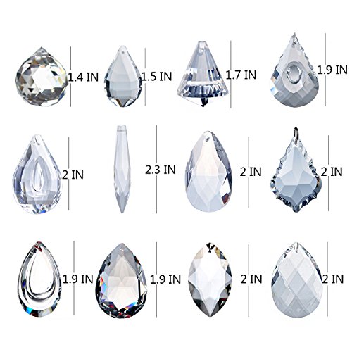 H&D Pack of 12 Clear Crystal Chandelier Lamp Lighting Drops Pendants Balls Prisms Hanging Glass Prisms Parts Suncatcher Home/House Decor