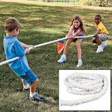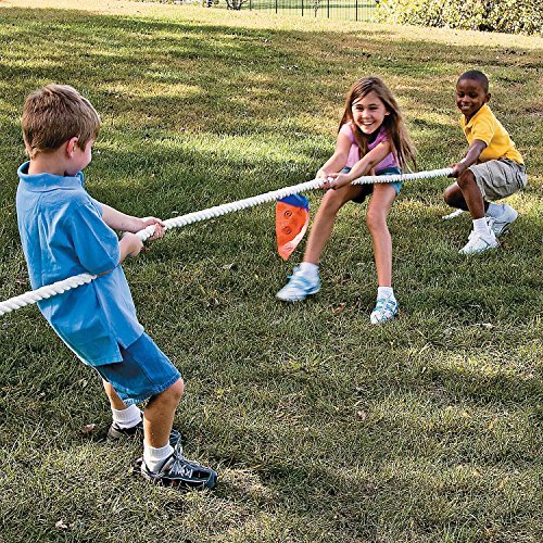 -. Feature : Teamwork and cooperation is essential for a good Tug of War game! / Here's how you play: choose a level playing surface, such as a grassy field, mark a line on the ground and divide up equally into teams. / Line up the teams on each side of the tug of war rope and pull, tug, pull! / The goal is to stay on your side of the center line, if your team crosses over, other side wins! Made of a polyester fiber, our tug of war rope is extra soft and won't hurt little hands! / Rope is 11 ft. 10" with a 1 1/2" diameter. Includes a 9 3/4" nylon flag. For 8 to 10 children.