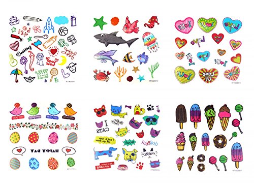 GGSELL GGSELL look like real temporary tattoos 6pcs Cartoon tattoos for kids fake tattoo stickers in a packages,including cartoon fishes,cut animals,ice...