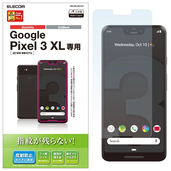 ●Pixel 3 XLの液晶画面をキズや汚れから守る、指紋防止タイプの反射防止フィルムです。