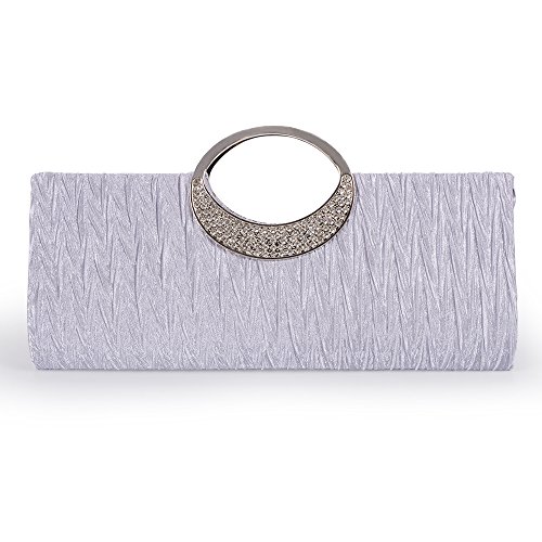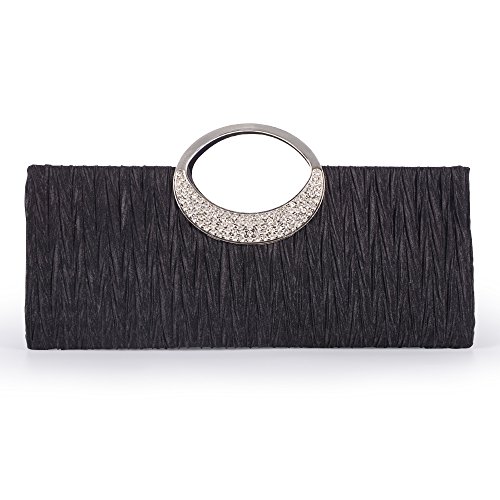 [Material]: This gorgeous bag is made from soft satin with pleated and crystal detail