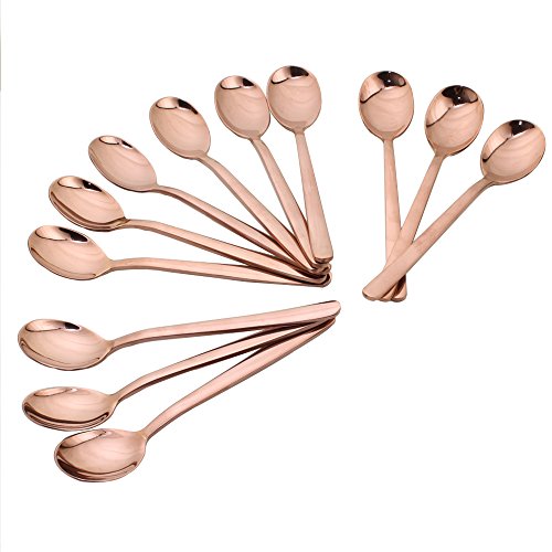 Enwinner 12-Pieces Demitasse Espresso Spoons, Rose Gold 5.5-Inch Teaspoon Stainless Steel Mini Sugar Coffee Mini Korean Spoon