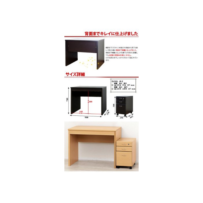 사이즈 : 데스크 W90×D55×H70cm 체스토 W29×D46.5×H50cm