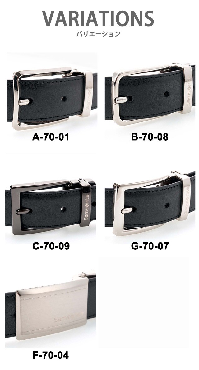 | 商品名 | Samsonite サムソナイト リバーシブル オリジナルベルト レザーベルト ブラック/ブラウン メンズ A-70-01 B-70-08 C-70-09 G-70-07 F-70-04 | ||