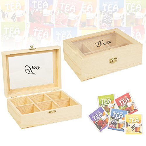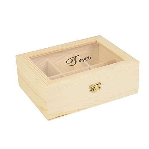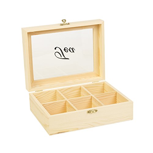 Product Description Store your tea in this natural piood Wooden Tea Box.It has 6 large compartments and a transparent lid for viewing your selection .For those who don't drink tea, it can be used as a spice box or as a general food container. 0