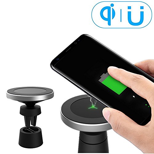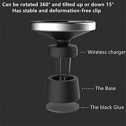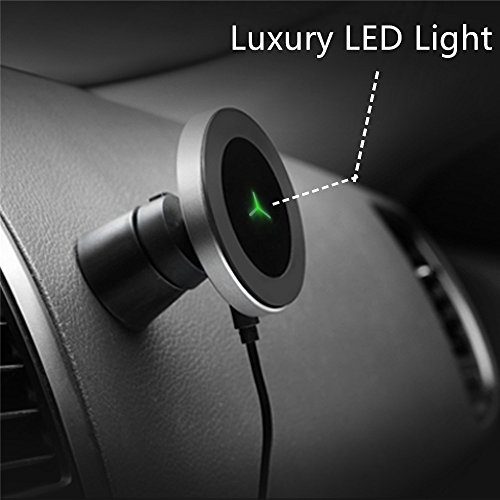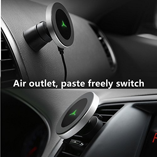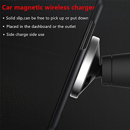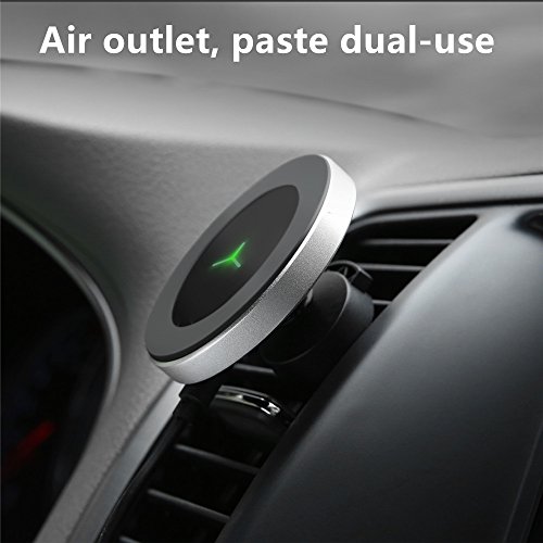 -. Feature : WIRELESS CAR CHARGER:The wireless charge modes is available for Samsung Galaxy S8, S8+/S8 Plus, S7, S7 Edge, Note 5,Note 7,S6 Edge Plus,iPhone 8,iPhone 8 Plus,iPhone X and all devices that support wireless charging.Other devices need extra receiver (Not Included): Samsung Note 2, Note 3, Note 4,S3,S4, S5, iPhone 5s,6,6s,6plus,7,7plus, LG G3, G4 ect / CONSIDERATE DESIGN:The wireless charger can be rotated 360 degrees and tilted up or down 15 degrees to provide an optimized visual image.Aluminum cover, silicone anti-skip pad, strong sticker and magnets. Easy installation and connection by strong magnets, just one touch(If the magnetic force is not strong due to the thick phone case, please stick the metal ring which included in the package) / TWO WAYS: The wireless charger is not only used for car air vent mount but also used at office, dashboard or home mount wherever you like / CHARGING:This wireless charger is for thin case within 3mm or just charge directly.Stand by State:Bright blue light in the middle;Charging:Bright blue light below / WARRANTY:1-Year manufacturer's warranty and with 30 days no-questions-asked return policy.If you have any questions,please contact us