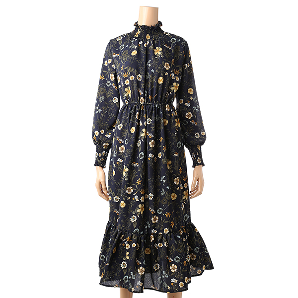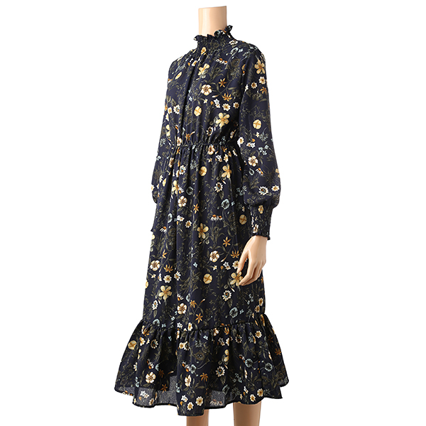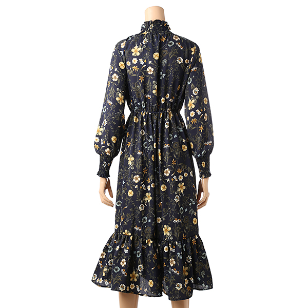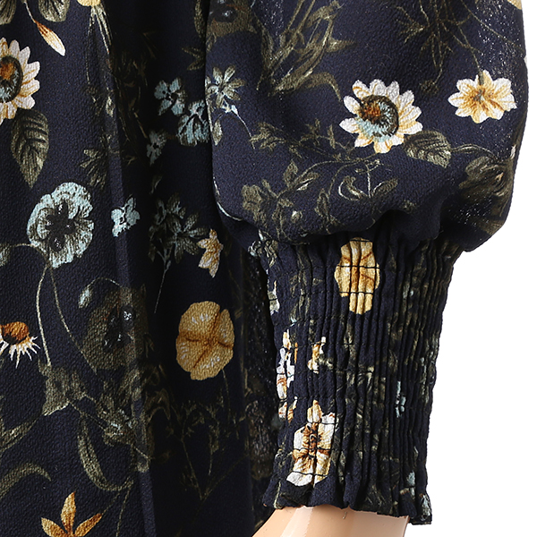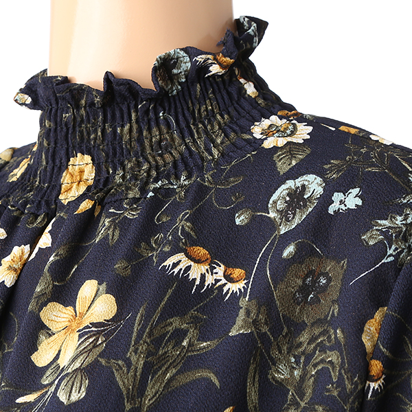 하이넥 프릴 디테일과 소매의 벌룬스타일이 우아하고