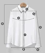 | 尺码 | ①肩宽 | ②胸围 | ③袖臂围 | ④袖口围 | ⑤袖长 | ⑥前衣长 | ⑦后中长 | ⑧下摆围 | ||