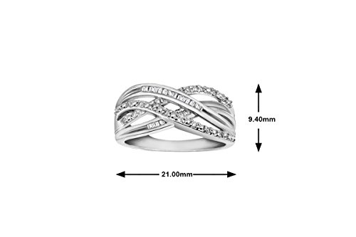 PREMIUM QUALITY : .925 Sterling Silver crossover ring studded with baguette and round diamonds. Available in size 7 only.
