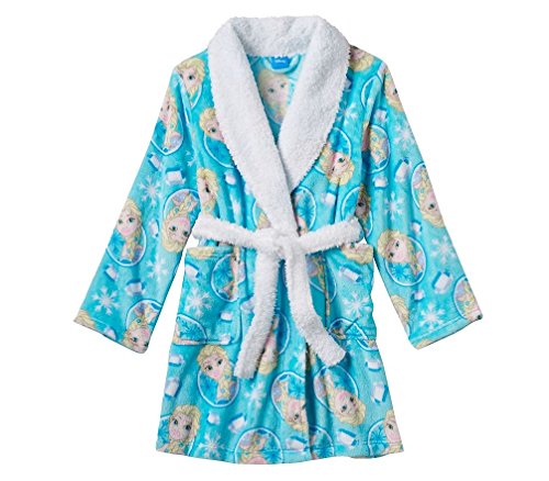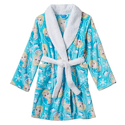 Keep her from becoming frozen after her bath in this girls' Disney's Frozen bath robe. In blue. © Disney PRODUCT FEATURES Long sleeves 2 slip pockets Attached tie belt Elsa & snowflake print Terry cloth details FABRIC & CARE Polyester Garment is flame resistant Machine washFeature
