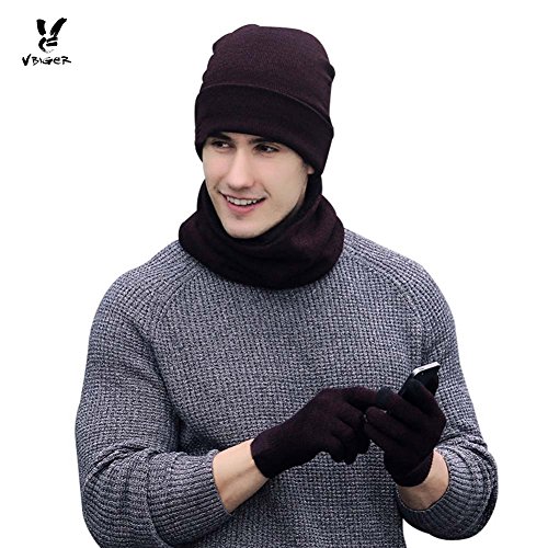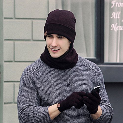 | (Setaria Viridis)/Accessories/Cold Weather Accessories/DIRECT FROM USA/Winter Warm Mens Womens Beanie Hats with Neck Scarf Touch Screen Mittens Gloves Unisex 3 Pieces... |