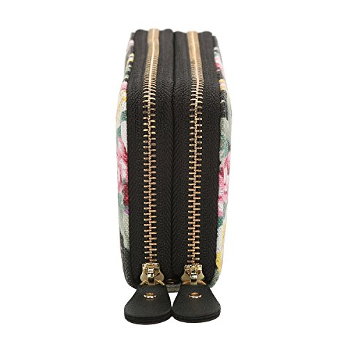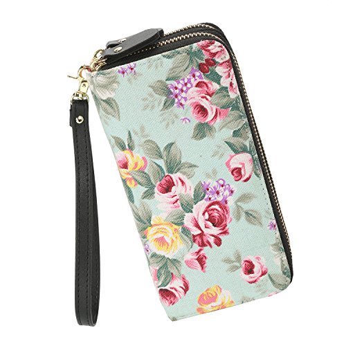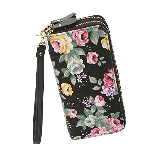 -. Feature : Stylish design:Super elegant and fashion flower pattern,beautiful and comfortable to carry,easy to collocation costume / Attachable strap:Wallet with a removable strap that makes it very convenient for easy carrying,free your hand / Dimensions: 7.8 x 3.9 x 1.7 inches / 19.5 x 10 x 4.4 cm (Big enough to hold 6" cell phone) / Double zipper bags and large capacity design, convenient to storage lots of things in category / Function pockets: 8 card slots,3 zipper pockets,2 note slots, even can use as a cell phone case, can hold iPhone 6/6 plus, iPhone 7/7 plus, Samsung galaxy s7 edge