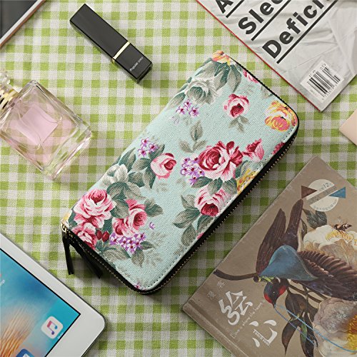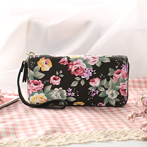 -. Title : Women Wallet Floral Purse Long Clutch Bag Zipper Canvas Phone Card Holder Strap
