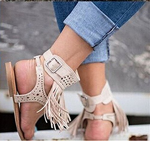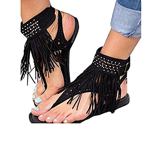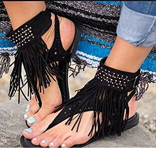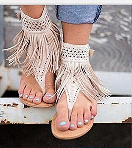 Huiyuzhi Womens Tassels Thong Flats Flip Flops Fringe Flat Sandals