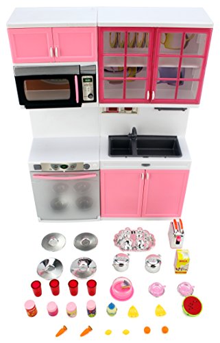 -. Title : 'Modern Kitchen 16' Battery Operated Toy Kitchen Playset, Perfect for Use with 11-12" Tall Dolls
