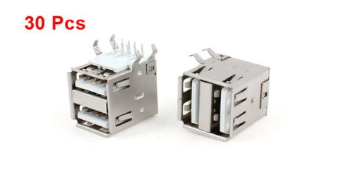 Uxcell Dual USB Type A Right Angle DIP 8-Pin Female Jack Socket Connector, 30 Pieces