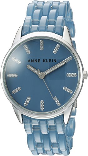 -. Binding : Watch -. Brand : Anne Klein -. Color : Blue/Silver -. Department : womens -. EAN : 0086702597055 -. Feature : Domed mineral crystal lens; glossy denim blue dial with glitter filled silver-tone hands and markers / Denim blue transparent resin adjustable link bracelet; fold over clasp with double push-button safety / Japanese-quartz Movement / Case Diameter: 36mm / Water resistant to 30m (100ft): in general, withstands splashes or brief immersion in water, but not suitable for swimming or bathing -. Label : AK Anne Klein -. Manufacturer : AK Anne Klein -. Model : AK/2617BLSV -. MPN : AK/2617BLSV -. PackageQuantity : 1 -. PartNumber : AK/2617BLSV -. ProductGroup : Watch -. ProductTypeName : WATCH -. Publisher : AK Anne Klein -. Studio : AK Anne Klein -. Title : Anne Klein Women's AK/2617BLSV Glitter Accented Silver-Tone and Denim Blue Transparent Resin Bracelet Watch -. UPC : 086702597055