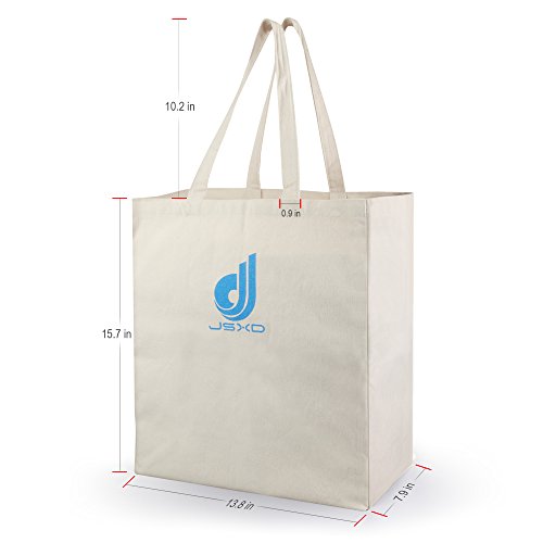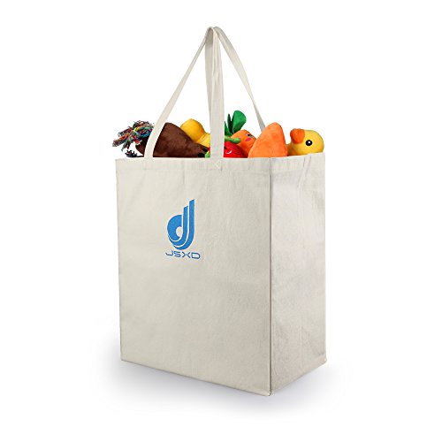 JSXD Large Reusable Canvas Washable Grocery Tote Bags Foldable Shopping Bags eco-friendly (Set of 2, Natural)