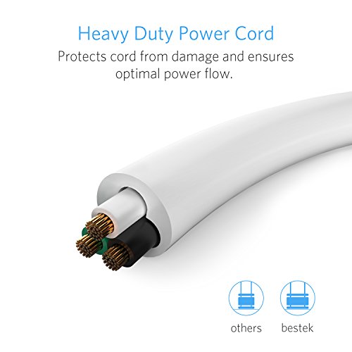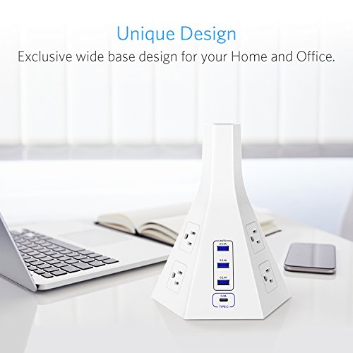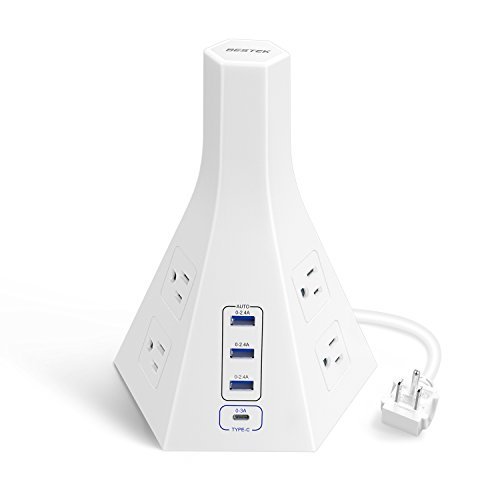 Tower Power Strip with USB by BESTEK – Vertical 6 Outlet 6 Foot Long Power Cord, 3 USB & 1 Type-C Charging Ports