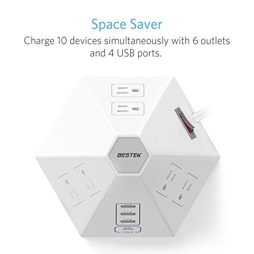 Multi-Charging: 6 adapter-friendly outlets power strip with 4 USB ports provides convenient charging for multiple devices in your home and office