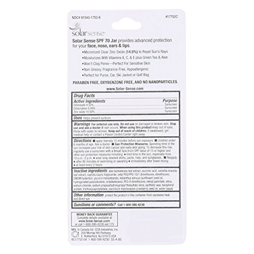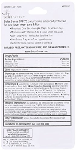 -. Binding : Misc. -. Brand : Solar Sense -. Label : Solar Sense -. Manufacturer : Solar Sense -. ProductGroup : Beauty -. ProductTypeName : BEAUTY -. Publisher : Solar Sense -. Size : oz -. Studio : Solar Sense -. Title : Solar Sense Clear Zinc SPF 70 Cream For Face (Carded Jar), 0.5 Ounce Unit