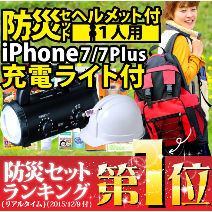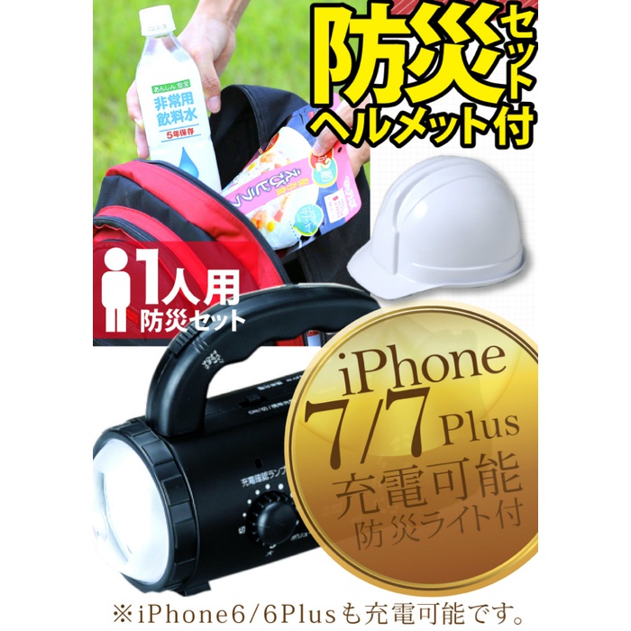원본상품명: ヘルメット付防災セットR”iPhone充電??ライト?備 1人用