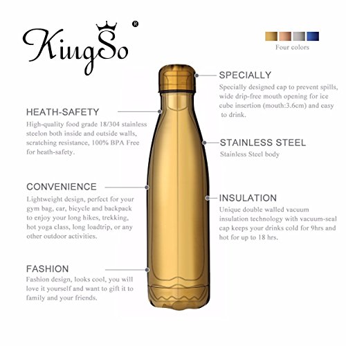 | (KINGSO)/Running/Water Bottles/DIRECT FROM USA/KINGSO 17oz Double Wall Vacuum Cool Insulation Stainless Steel Water Bottle Leak- proof and No ... |